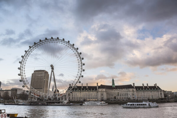 The London Eye at sunset (Millennium Wheel), South Bank, London, England